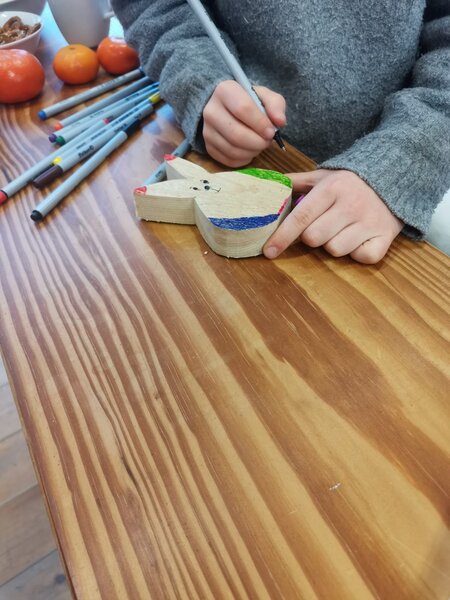 Wir möchten hierbei nicht auf einzelne Krankheitsbilder und -verläufe eingehen, aber allen Beteiligten tat diese gemeinsame Zeit richtig gut. Es entstanden Erinnerungen wie Astmännchen, ein Murmelspiel, gesägte und gestaltete Bilderrahmen, geschnitzte Löffel, ein kreuzförmiger Kerzenhalter, eine geschnitzte Trinkschale, ein Kugelschreiberhalter, Holzblumen, Bumerangs und Engel sowie eine Meerjungfrau.