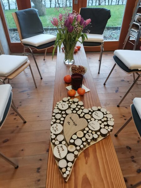 Die Stimmung während dieser Stunden war einfach ganz wundervoll, sehr kreativ, die Holzwerkstatt war immer mit guter Stimmung, Lachen und tollen Gesprächen gefüllt. Die Pausen mit Kaffee, Tee, Apfelsaft, Kuchen, Snacks und Naschis wirkten sich auf die Gemeinschaft besonders schön aus.