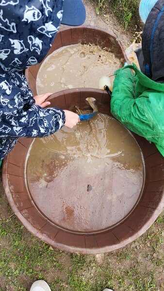 Im Außenbereich der Kita musste die Wasserpumpe, die mit Regenwasser betrieben wurde, auf Grund von unzureichenden Wasserwerten stillgelegt werden. Die Wasserpumpe war bisher das Highlight für alle Kinder. Da es mit einem sehr hohen Aufwand verbunden wäre die Pumpe mit einem Trinkwasseranschluss zu verbinden, soll der Wasserlauf, der zuvor nur in Verbindung mit der Pumpe bewässert werden konnte, zu einem Wasserspielplatz mit Wasserschale umgebaut werden. Das Wasser könnte dann von den Kindern mit Eimerchen und Schlauch in die Wasserschale gefüllt werden, um am dadurch entstehenden Wasserbach gemeinsam zu spielen und diesen Wasserspielplatz als vielfältige Bildungsmöglichkeiten für alle Kinder zu nutzen. Daneben soll die Terrasse durch Verkürzung eines Steinbeetes besser nutzbar gemacht werden.